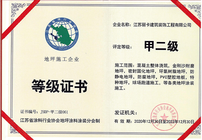 江蘇麗卡建筑裝飾工程有限公司是一家專(zhuān)業(yè)化、多元化公司;公司致力于工業(yè)地坪材料工程和施工場(chǎng)地的開(kāi)發(fā)設(shè)計(jì)、銷(xiāo)售施工及保養(yǎng)維護(hù)。